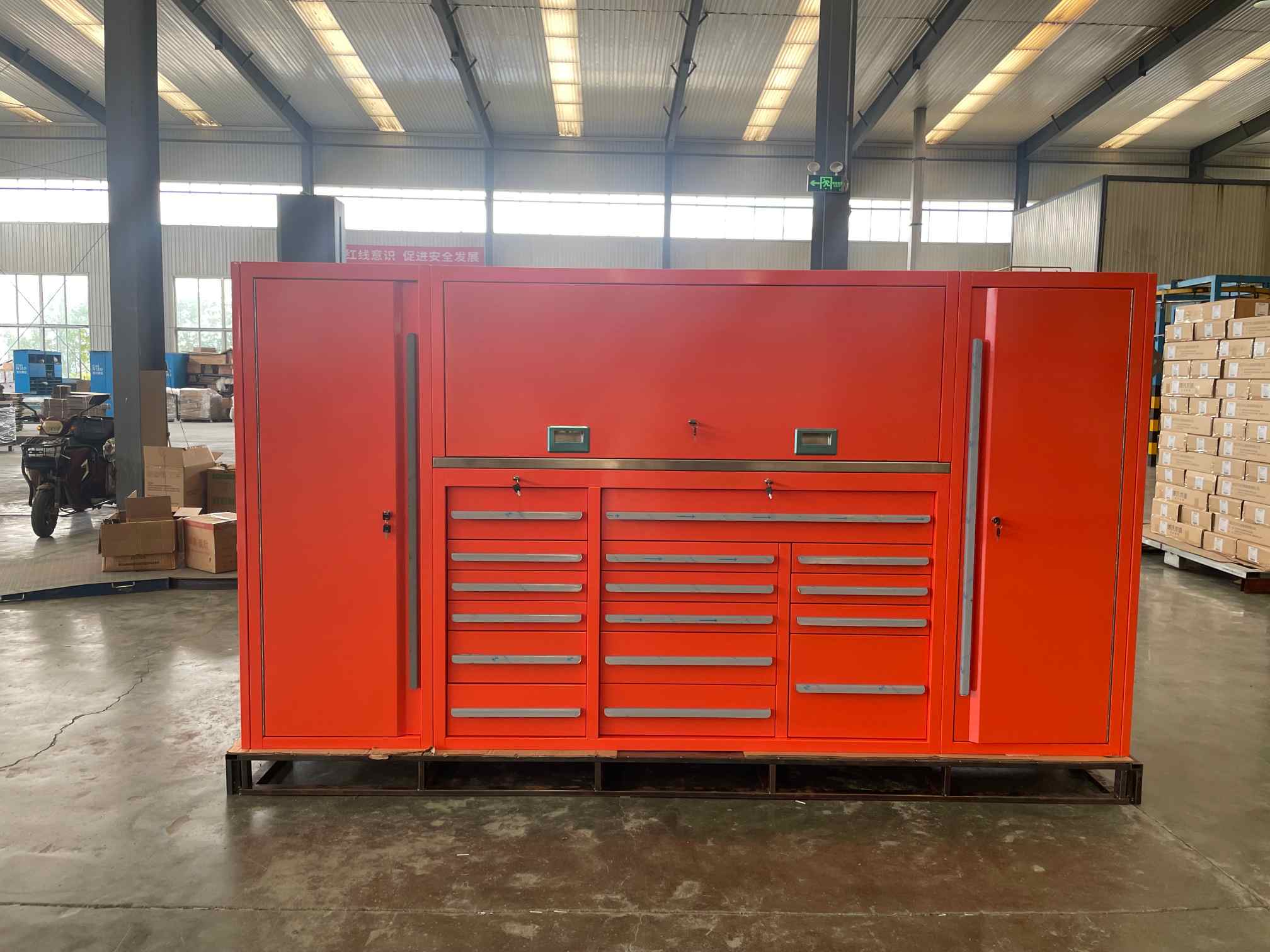 Шкафът с инструменти за студена стоманена стомана Cyjy е много чектов шкаф за тежкотоварване на инструменти. Той има професионален външен вид, гладка повърхност и е оборудван с тежкотоварни колела и предпазни ключалки. Той е поставен в средата на работилницата.