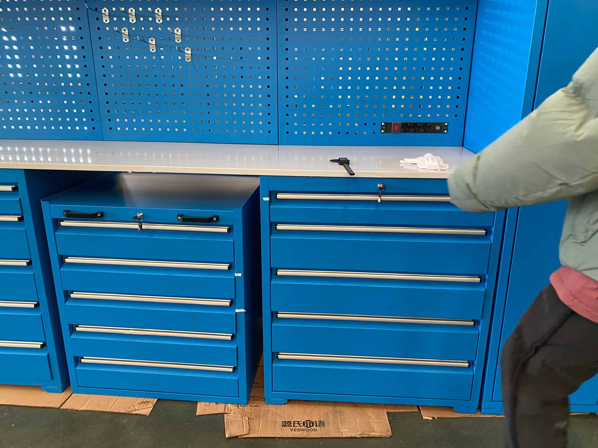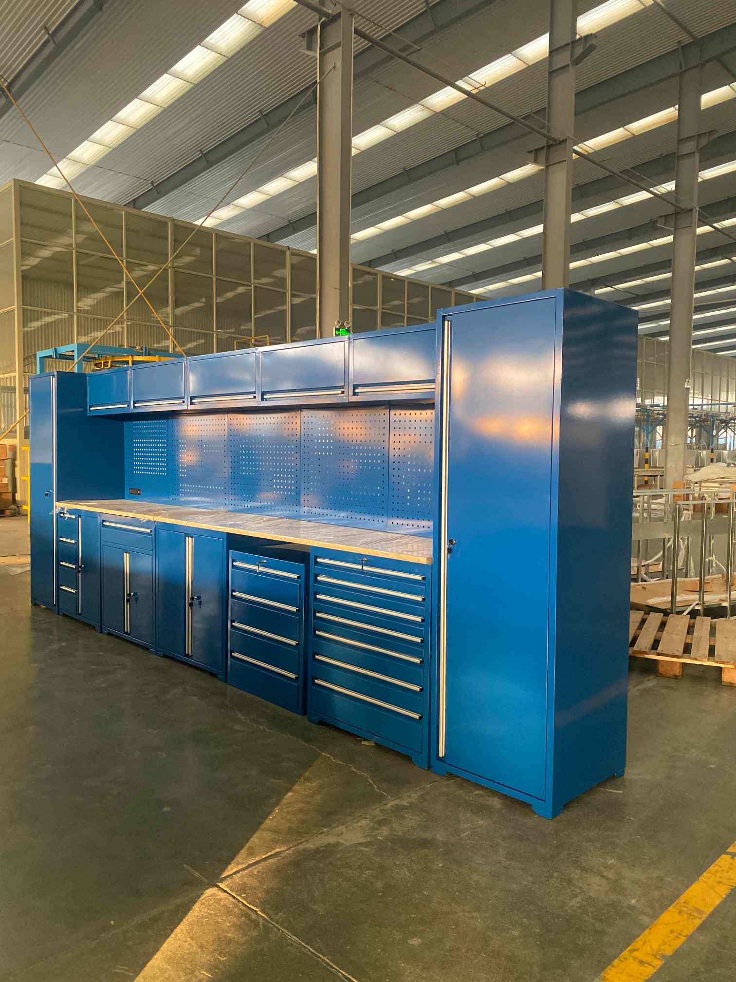 Цвят: В допълнение към обикновеното индустриално сиво и черно, шкафът за съхранение на гараж може да бъде персонализиран в привличащи вниманието цветове като оранжево и синьо, за да съответства на персонализирани стилове на гараж.