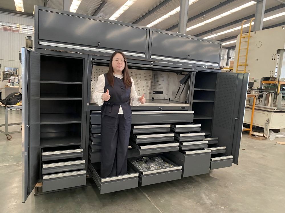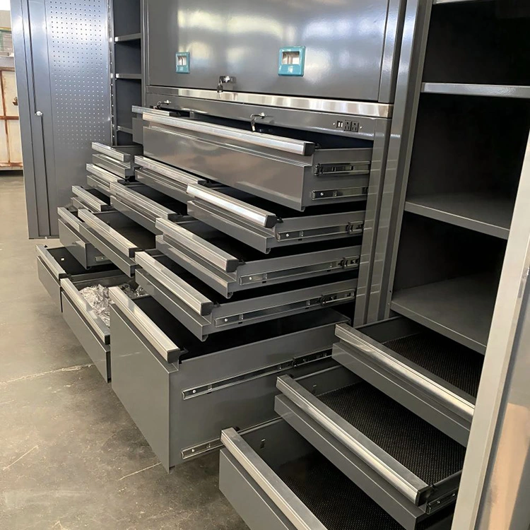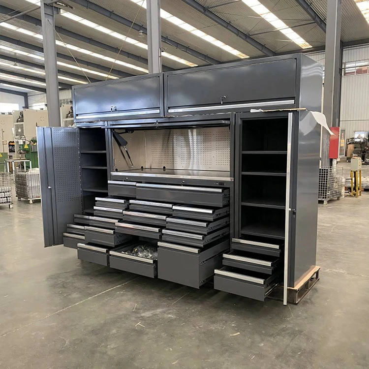 Модулна и персонализирана комбинация от безпроблемно: Новите дизайнерски гаражни шкафове поддържа безплатно сплайсиране на модули като шкафове за стени, подови шкафове, стени на инструмента и др. Структурата и укрепването на придружаването на структурата и материалите: Новите дизайнерски гаражни шкафове приемат 1,5 мм студено ролилна стоманена рамка, с еднослоен товарен капацитет от 150 кг, който е с 50% по-висок от обикновените шкафове за съхранение и е подходящ за съхранение на тежки инструменти и оборудване. Оптимизация на оптимизирането: повърхността на новите дизайнерски шкафове се обработва, като се обработва електростатично. за влажна или прашна среда; Панти на вратата на шкафа са преминали 50 000 тестове за отваряне и затваряне, а продължителността на живота се удължава 3 пъти.