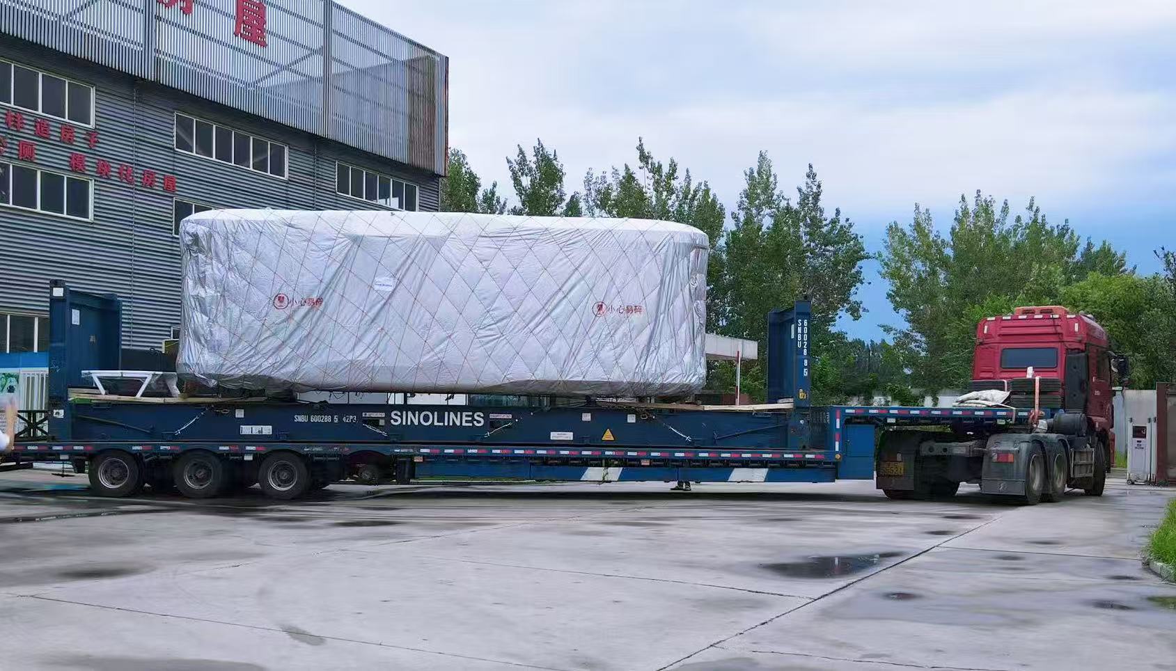 Преди да се зареди върху превозното средство, къщата на космическата капсула трябва да бъде обвита със слой от PE филм, за да бъде плътно запечатан. След това персоналът използва кран, за да вдигне четирите ъгъла на къщата на космическата капсула и да го повдигне във влака. Дъното на къщата на космическата капсула е фиксирано към кораба с помощта на кабели на кораба. Накрая ще го увием с международни товарни мрежи, ще опаковаме космическата капсулна къща и тогава шофьорът ще използва кран, за да го постави на кораба.