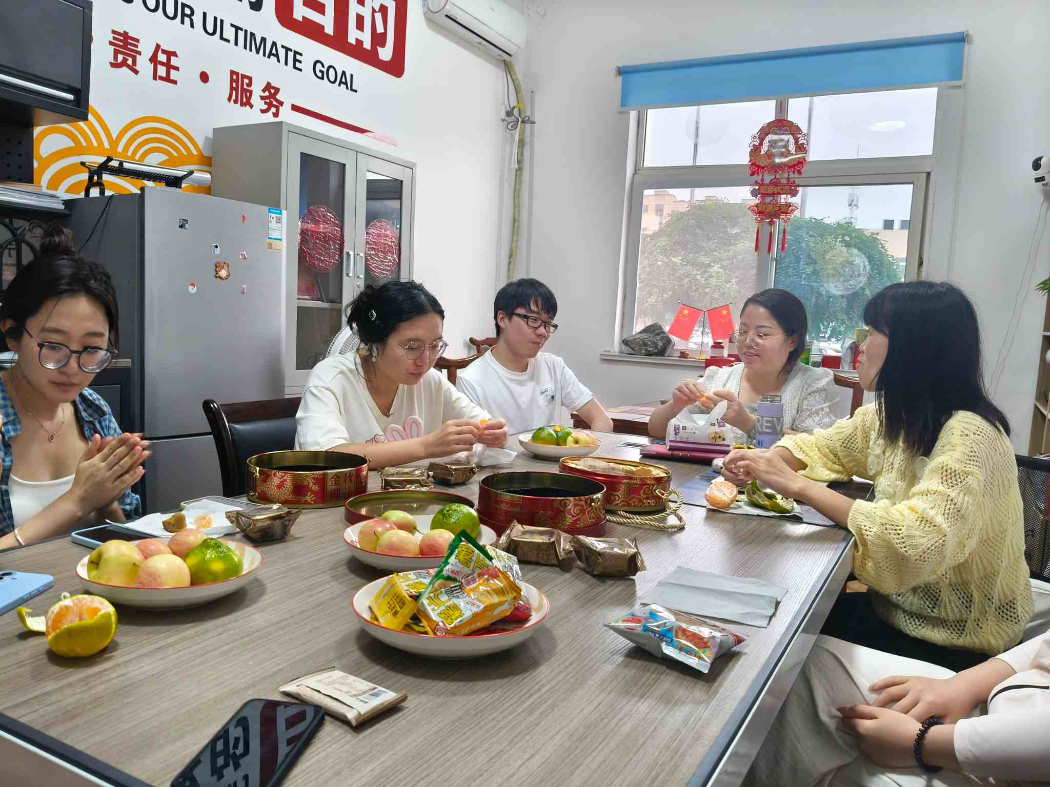 По време на събитието мениджърът Ву внимателно приготви вкусен следобеден чай, който включваше богато разнообразие от закуски и беше сдвоен с пресни и пълни сезонни плодове, създавайки спокойна и приятна комуникационна атмосфера за всички. По време на почивката за чай старшите служители поеха инициативата да общуват с новия колега, споделяйки трудов опит и ежедневния живот на компанията, а новият служител също участва активно. Всички седяха наоколо, за да споделят храната и новият служител наистина усети приобщаването и топлина на "голямото семейство" на Cyjy.