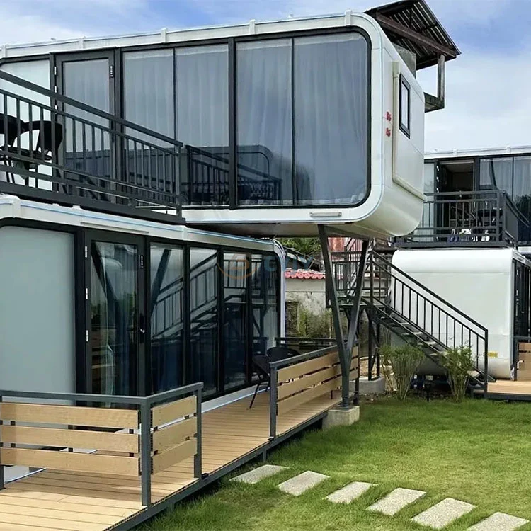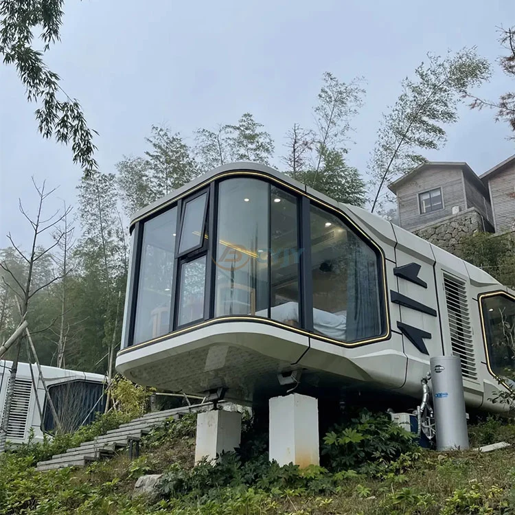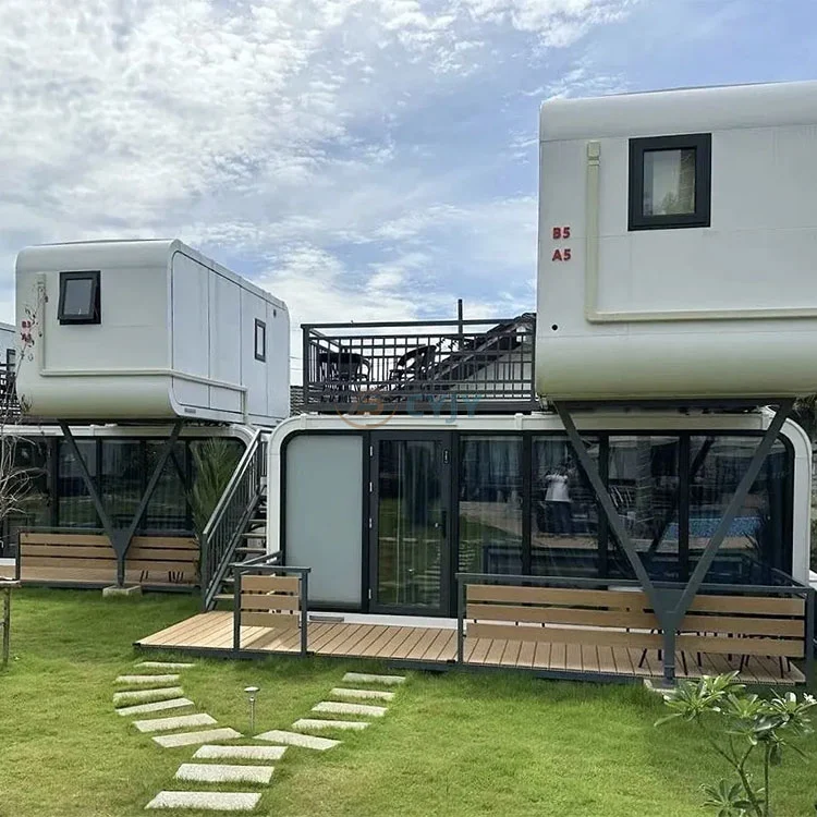 Сглобяемите капсулни къщи са изработени от висококачествени материали и са екологични! Сглобяемите капсулни къщи използват стандартизирани модулни единици, които могат да бъдат гъвкаво комбинирани според нуждите, да поддържат еднослойно или многослойно подреждане и да се адаптират към различни изисквания за пространство. Сглобяената капсулна къща осигурява разнообразни опции за външен вид, вътрешно оформление и функционална конфигурация, за да отговори на персонализирани нужди.